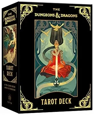 This officially licensed tarot deck pays homage to the lore of Dungeons and Dragons by pairing characters and encounters with the Major and Minor Arcana of tarot. The characters of the Major Arcana align to the Rider-Waite Tarot while the suits of the Minor Arcana are mapped to abilities within the game of Dungeons and Dragons.