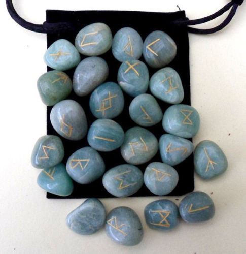 Green Aventurine Rune Set - Runes, Book, Chart & Pouch.