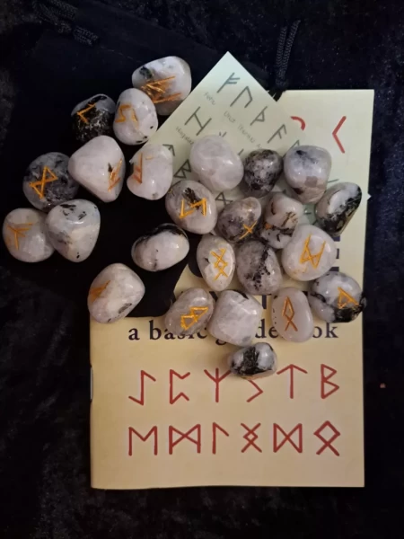 Rainbow Moonstone Rune Set - Runes, Book, Chart & Pouch.