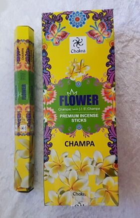 Chakra Flower Champa Premium Incense Sticks. The Chakra brand is from the The House of Zed Black.