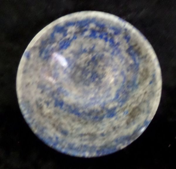 This beautiful handmade 3 inch bowl is cut from a single piece of natural Lapis Lazuli. It is hand carved and polished to a high gloss finish on all surfaces. Every bowl is diferent and unique, both in the cut, colour, pattern, size and design.